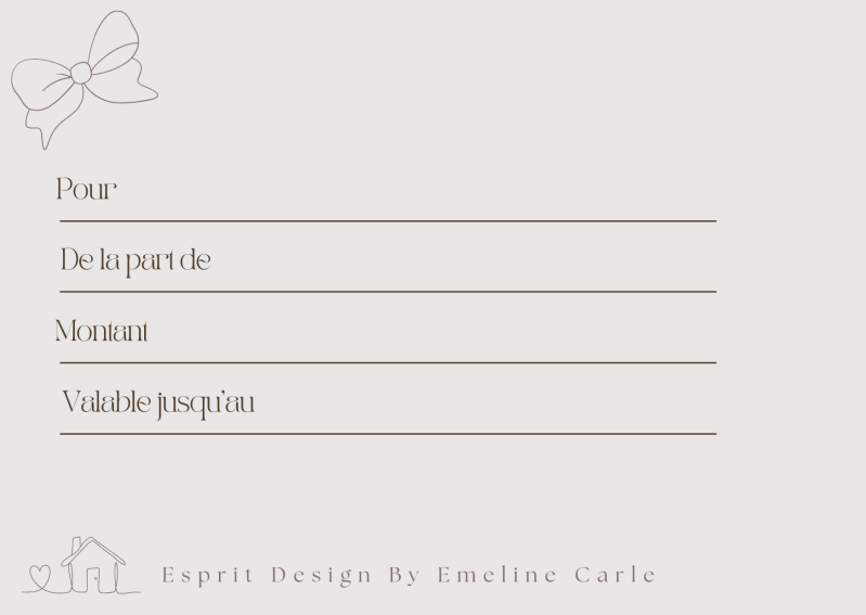 Recevez votre carte cadeau, prête à être offerte ou par mail pour surprendre vos proches avec un moment dédié à leur intérieur.