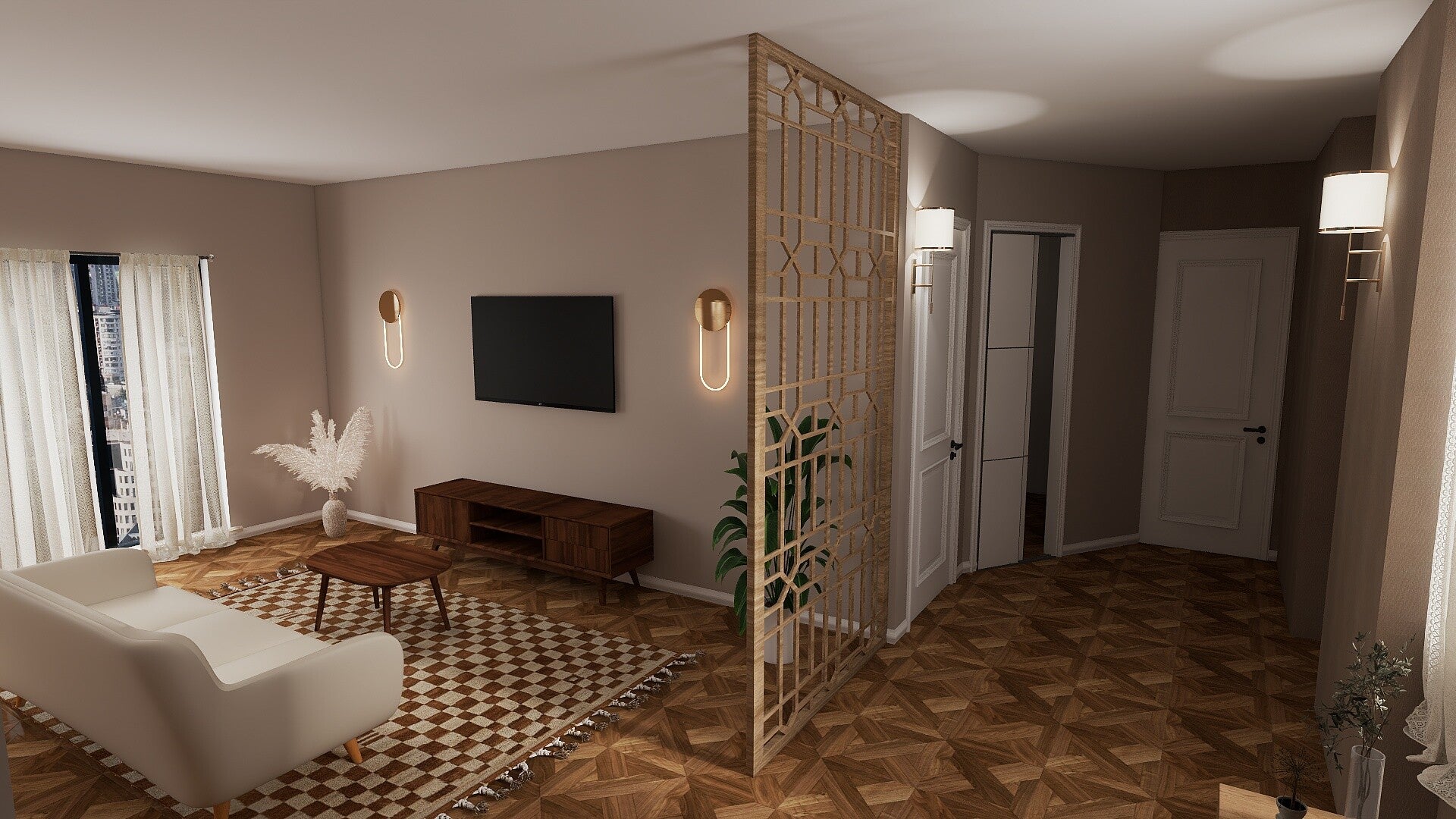 Les clients souhaitent repenser la circulation de l’appartement, ainsi que que la disposition et la dimension des espaces. Créer un espace de travail pour la cliente, une chambre de bébé et un espace de vie accueillant, fluide, chaleureux et modulable. Ils souhaitent en terme de décoration un intérieur coloré, chic et bohème, reprendre et mélanger les styles berbère et bohème et conserver ou reproduire les détails parisiens de l’appartement (parquet et moulures).